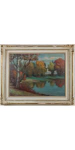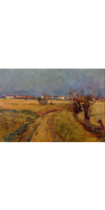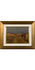 Tipico paesaggio della bassa friulana. A riguardo Biagio Marin scrisse : “ Pittore fedele alla sua terra e alla sua arte, pittore sognatore e poeta. Da ciò il suo amore per i paesaggi vaporosi, dal cielo grigio e dalle bruniture autunnali e la commossa intimità con cui questi paesaggi sono trattati”. Questa opera rientra a pieno merito in questo contesto e ciò che attira il maestro, secondo Arturo Manzano, e’ l’opulenza dei colori autunnali che danno l’addio alla bella stagione. Opera più volte esposta in mostre personali e collettive, e’ pubblicata a piena pagina, a colori, nell’opera omnia curata da Paolo Pugnetti.