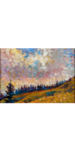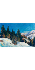 Lo storico dell’arte Dalla Marta, suo caro amico e profondo conoscitore della sua pittura, ebbe a scrivere nel 1998, in occasione del 75 Congresso della Società Filologica Friulana dal titolo “TUMIEC” : “ La diffusa e frequente presenza delle opere di Arturo Cussigh assume un significato di una comunicazione imperativa, una professione di fede di valenza civile e morale, per la fedeltà ai valori culturali della tradizione e dell’ambiente, a questa fedeltà e vocazione autentica si affiancano i riconoscimenti della critica ufficiale”. “ Cussigh , forza cromatica e luce : e la Carnia rivive sulla tela “ titolava il Messaggero Veneto nel 1989 in occasione della mostra antologica a Palazzo Frisacco a Tolmezzo. E sono proprio la forza cromatica e la luce che fanno di questo dipinto un capolavoro di contrasti di colore. Il verde della pineta, il bianco della neve in disgelo e l’azzurro intenso del cielo si accostano con una bravura unica, quasi da incantare e emozionare lo sguardo.