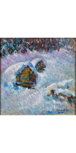 Opera di pregevole qualità, eseguita dalla pittrice in età matura, che evidenzia, ancora una volta, uno dei tanti scenari della sua Carnia : gli stavoli dei pastori sotto la neve. Esposta nel 2014 alla Pinacoteca De Cillia a Treppo Carnico nell’antologica “ Silenzi, profumi e colori della mia terra “. Esposta a Palazzo Frisacco a Tolmezzo, sempre nel 2014, nella personale dal titolo “ Raffinatezza del segno grafico “. Opera ripresa anche nel video che ha accompagnato l’esposizione del 2023 “ La pittura dell’anima “ lavoro che sintetizza il suo motto “ Amo questa nostra Carnia, ho imparato ad amarla dipingendo, guardate e scopritela anche Voi “. Già collezione privata dell’artista.
