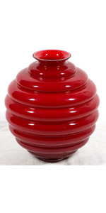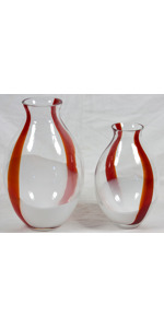 Lotto unico di 2 vasi in vetro di Murano bianco e rosso