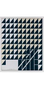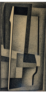 Tecnica mista su tavola con vetro zigrinato a linee orizzontali