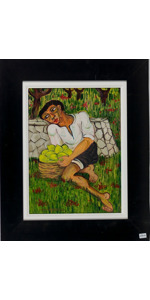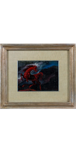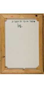 Già collezione Rumore (amico e medico del Maestro), l’opera è stata custodita nel prestigioso palazzo Angaran del 1480 a Venezia. Opera esposta in varie mostre in Italia e all’Estero, è stata acquistata alla Fiera dell’Arte di Udine nei primi Anni 2000. Proveniente da una importante collezione Udinese, il cui proprietario in qualità di giornalista ha avuto modo di frequentare il Maestro a Venezia, e dal quale ha raccolto un’ intervista ben nota pubblicata dalla Stampa.