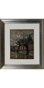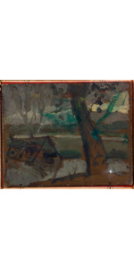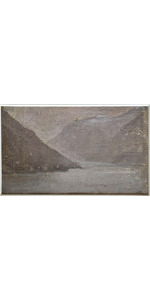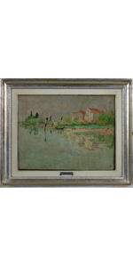 Etichette di provenienza Galleria Vinciguerra, Caserta e della Casa d'aste Blindarte, Napoli sul retro. Opera protetta da vetro museale