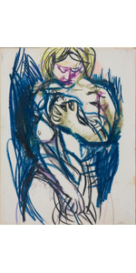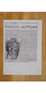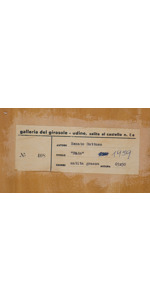Etichetta della Galleria del Girasole, Udine; opera con pubblicazione d'epoca ne "Il Messagero Veneto" datato Domenica 31/01/1960, articolo edito in occasione della mostra personale di Renato Guttuso alla Galleria del Girasole di Udine nel 1959/60 di cui etichetta al retro di quest'opera.