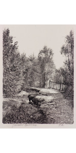 1) "Tarquinia", acquaforte su carta, es. 12/50, foglio cm. 35x44, inciso cm. 22,5x30; 1) "Tarquinia", acquaforte su carta, es. 50/50, foglio cm. 34,5x38,5, inciso cm. 17,5x22,5.