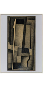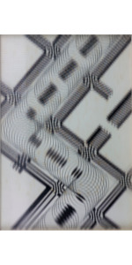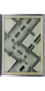 Tecnica mista su tavola con vetro zigrinato a linee orizzontali
