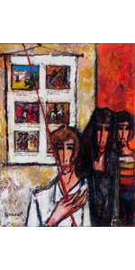 Già collezione Rumore (amico e medico del Maestro), l’opera è stata custodita nel prestigioso palazzo Angaran del 1480 a Venezia. Opera esposta in varie mostre in Italia e all’Estero, è stata acquistata alla Fiera dell’Arte di Udine nei primi Anni 2000. Proveniente da una importante collezione Udinese, il cui proprietario in qualità di giornalista ha avuto modo di frequentare il Maestro a Venezia, e dal quale ha raccolto un’ intervista ben nota pubblicata dalla Stampa.