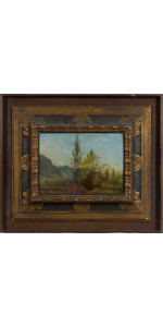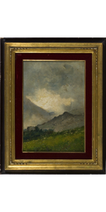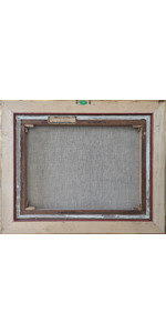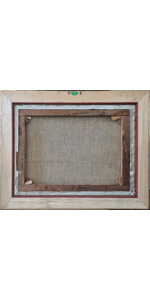 Etichette di provenienza Galleria Vinciguerra, Caserta e della Casa d'aste Blindarte, Napoli sul retro. Opera protetta da vetro museale