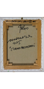 Certificato di autenticità e garanzia sul retro, con timbro della Galleria Stefano Simmi, Roma. Certificato di provenienza a cura della Casa d'aste Artesegno, Udine.